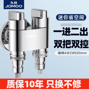 九牧洗衣机三角阀家用一分二接头分流器双出水龙头三通阀一进二出