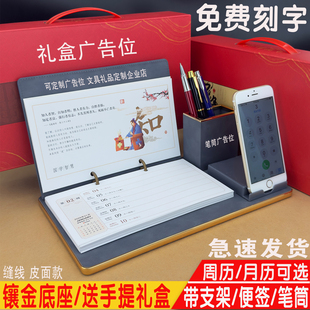 • 2026年高档礼盒装 台历坐历皮面周历马年笔筒月历物流银行保险定制