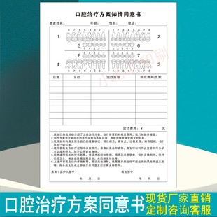 现货口腔治疗方案知情同意书A4牙科治疗计划表口腔门诊收费表定制