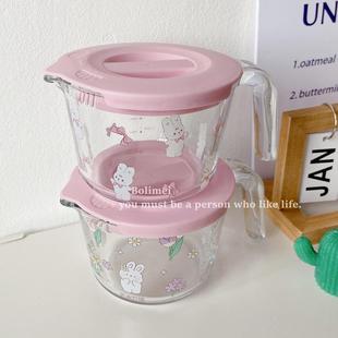 直销新款 蝴蝶结兔子高硼硅玻璃量杯少女心玻璃量杯烘焙大容量带盖
