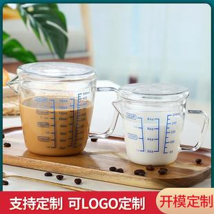 玻璃量杯带刻度家用食品级牛奶杯耐高温带盖杯子大容量烘焙计量杯