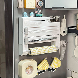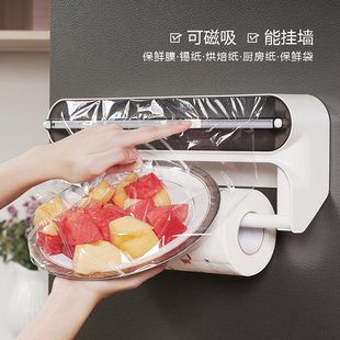 二合一保鲜膜切割器厨房纸收纳架锡纸烘焙纸保鲜袋磁吸冰箱可挂墙