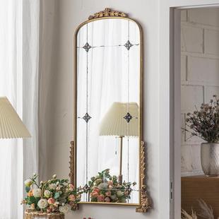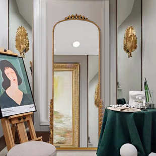 镜欧式 壁挂雕花落地镜镜子复古试衣家用支架全身 拱形穿衣镜带法式