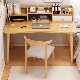 实木书桌家用学生学习写字桌卧室书桌书架一体带书柜抽屉电脑桌子