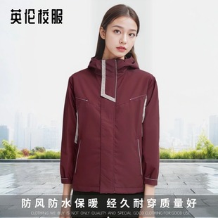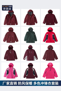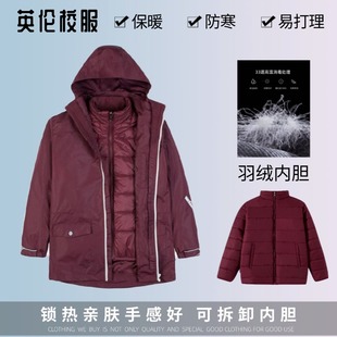 英伦风学生冬季 男女童加厚校园棉服校服 枣红脱卸内胆冲锋衣