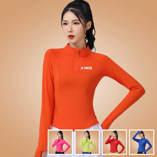 立领健身团体跳操上衣跑步运动上衣女 速干长袖 秋冬广场舞服装 新款