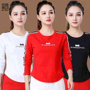 广场舞服新款 t恤团体跳操舞服健身服女团体体操服上衣女 运动长袖