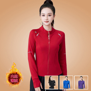 健身跳操跑步加绒外套女冬 运动速干上衣修身 杨丽萍广场舞服装 新款