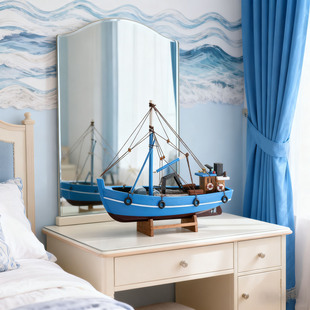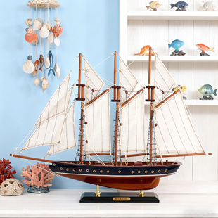 • 52CM一帆风顺帆船模型摆件北欧风精致实木卧室客厅阳台书柜装 饰