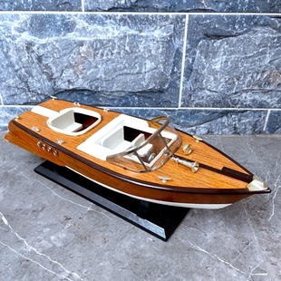 实木现代游艇快艇工艺船摆设手工家居办公室展厅儿童房装 饰仿真船