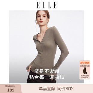 新款 ELLE微塑天丝羊毛肌底衣修身 显瘦舒适百搭打底上衣2025秋季
