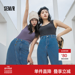 显瘦可外穿 宽肩上衣修身 森马背心女内衣一体式 带胸垫条纹内搭短款