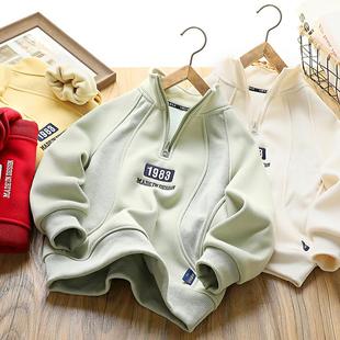 男童半拉链加绒卫衣秋冬2025新款 儿童立领洋气加厚上衣中大童衣服