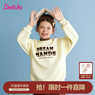 女孩儿童时尚 笛莎官方旗舰童装 新款 卫衣冬季 厚绒保暖上衣 女童长袖