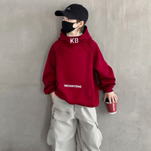 男童加绒卫衣秋冬2025新款 拜年服儿童本命年红色衣服中大童上衣潮