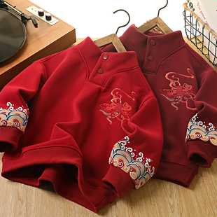 男童立领加绒卫衣冬装 儿童红色洋气拜年服大童上衣 2026马年新年款
