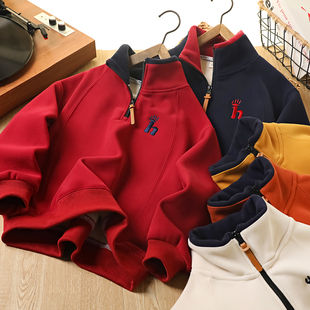 衫 男童加绒卫衣秋冬2025新款 儿童立领加厚上衣中大童帅气保暖长袖