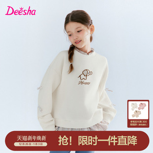大童女孩儿童洋气圆领套头绒衫 新款 上衣 女童卫衣冬季 笛莎官方童装
