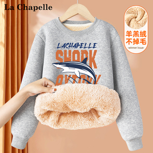 拉夏贝尔男童卫衣加绒加厚2023新款 男孩羊羔绒保暖上衣儿童 秋冬季