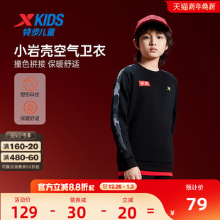 儿童拼接长袖 男童卫衣秋冬款 中大童圆领套头卫衣 特步童装 小岩壳