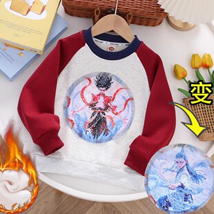 哪吒衣服儿童变图案卫衣加绒男童翻转变色亮片t潮酷敖丙国潮动漫T