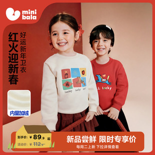 迷你巴拉巴拉男女童卫衣2025冬新品 保暖内里加绒下摆抽绳调节上衣