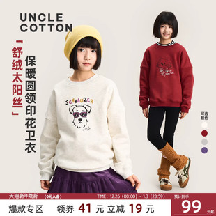 加绒保暖圆领卫衣可内搭 棉叔叔女童秋冬新品 舒绒太阳丝绒卫衣