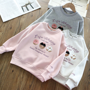 女童加绒卫衣秋冬保暖上衣25新款 中大儿童套头奥利绒上衣保暖潮