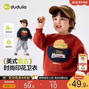 依依妈男童加绒卫衣儿童冬装 宝宝加厚宽松圆领字母贴标打底上衣潮