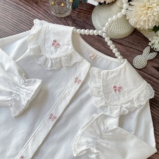 宝宝蕾丝花边衬衫 儿童上衣 纯棉洋气女童棉衬衣白色2025年春秋新款