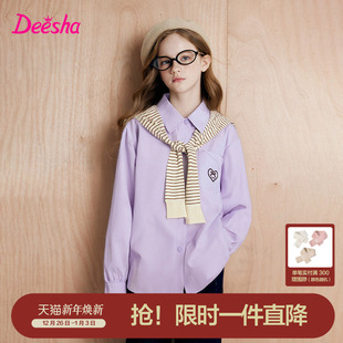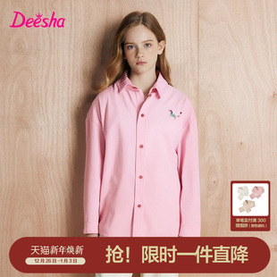 新款 笛莎官方旗舰童装 秋季 衬衫 大童女孩儿童微厚披肩衬衣 女童长袖