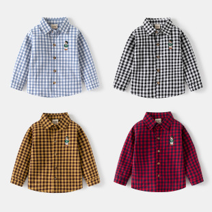 大童复古格纹衬衣大童休闲上衣长袖 派町童装 新款 2025秋季 男童衬衫