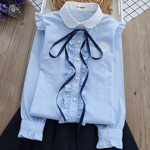儿童衬衣纯棉白色女孩小学生校服套装 女童白衬衫 学院风女大童长袖