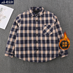 童装 儿童男孩学生加厚保暖纯棉衬衣秋冬 男童中大童宽松加绒衬衫