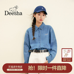 时尚 笛莎少女牛仔衬衫 青春少年初高中学生亲子妈妈装 新款 衬衣 秋季