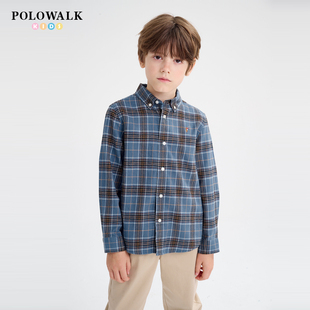 磨毛衬衫 POLOWALK童装 男童全棉格子蓝色长袖 秋冬新款 休闲 新品
