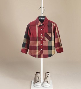 帅气上衣潮 英伦风衬衣中大童春秋款 儿童纯棉格子衬衫 男童女童长袖