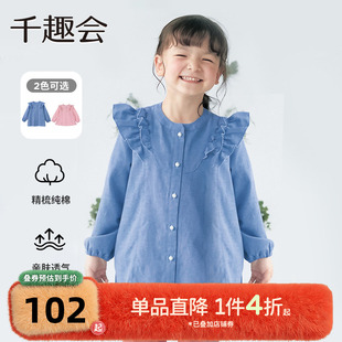 上衣 饰仿珍珠纽扣青年布棉质开衫 千趣会春秋款 女童肩部荷叶边装