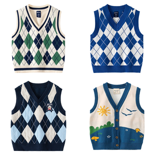 马甲纯棉针织衫 男童背心毛衣秋季 中小儿童学院风开衫 新款 宝宝 童装