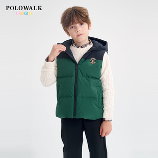连帽无袖 新品 男童羽绒马夹拼色背心中大童 秋季 POLOWALK童装