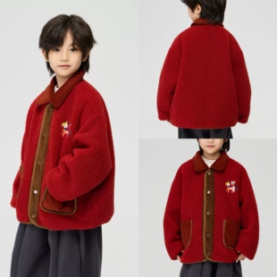 • 儿童小马刺绣保暖棉衣2025冬季 男女中大童喜庆新年红拜年服外套 款
