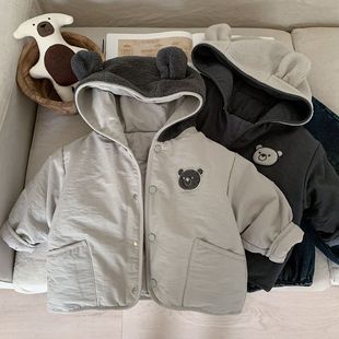 儿童连帽外套男保暖2025秋冬新款 小童小熊棉衣洋气宝宝夹克女夹棉