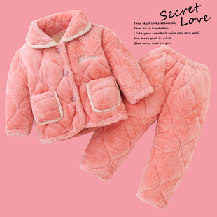 宝宝冬款 男女童保暖三层夹棉家居服套装 两件套 加厚款 儿童睡衣冬季