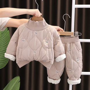 婴儿童衣服冬季 加绒加厚卫衣保暖两件套男女宝宝夹棉袄服洋气冬装