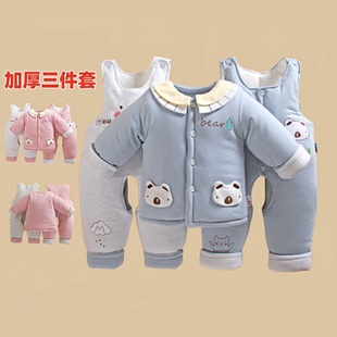 外出服女宝0一1岁婴儿衣服季 男宝宝冬装 三件套装 加厚棉服袄背带裤