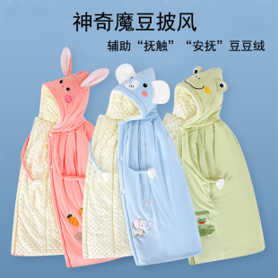婴儿披风斗篷秋冬儿童披肩保暖男女孩防风竹棉宝宝抗菌珊瑚绒外套