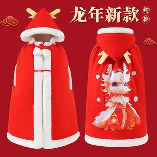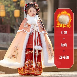 外套披风冬季 汉服女童喜庆保暖加绒加厚斗篷冬款 女中国风儿童长款