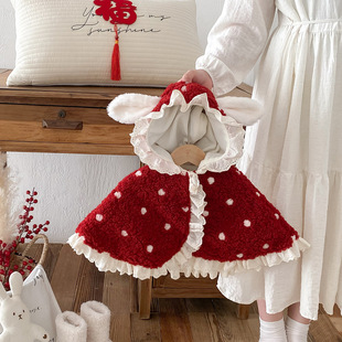 婴儿披风斗篷加绒保暖女宝宝防风外套中国风可爱披肩儿童披风