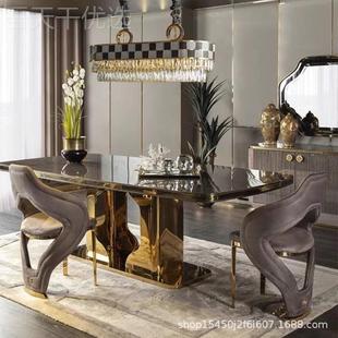 意新式 皮艺家用餐椅奢设计端师餐厅椅高级简WRJ约现代轻客厅椅高