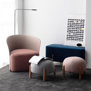 NOV布艺创凳子简约棉绒沙发矮凳家用意进门换小鞋 木实脚圆凳 穿鞋